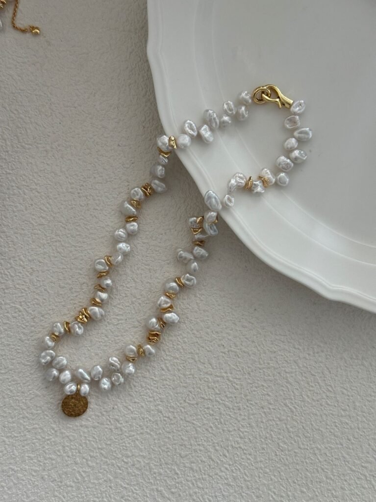 Size: Small baroque pearls is 6-8mm.Pearl Choker is 42cm, 18K Gold Plating S925 Sterling Silver Clasp.