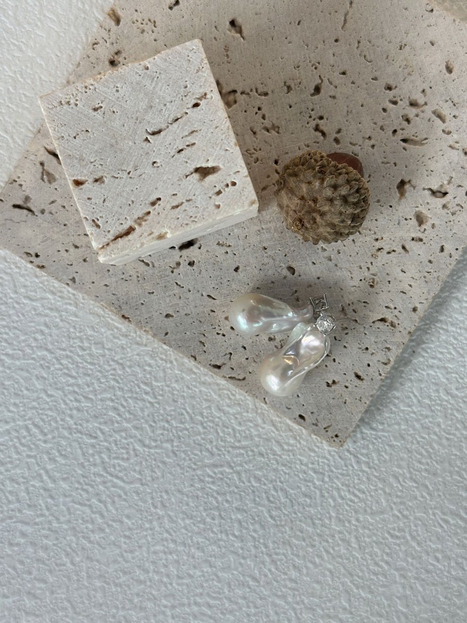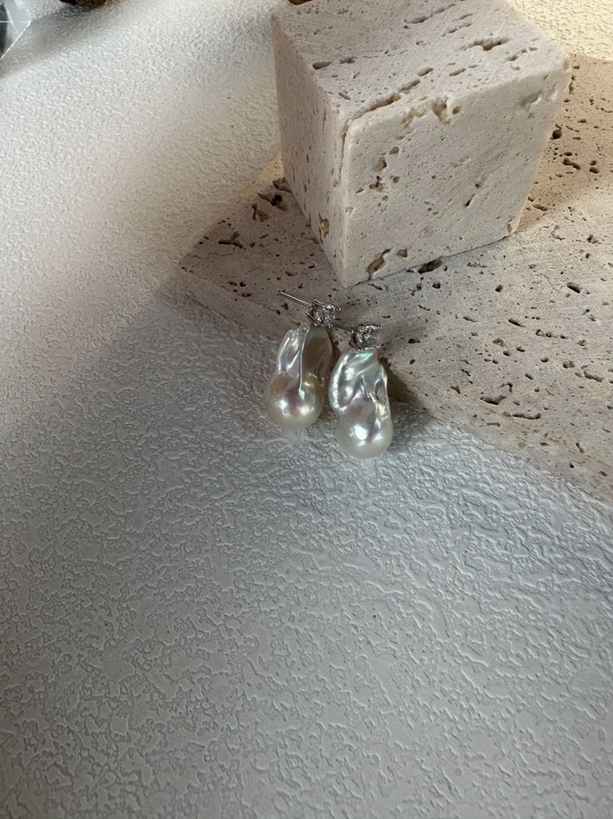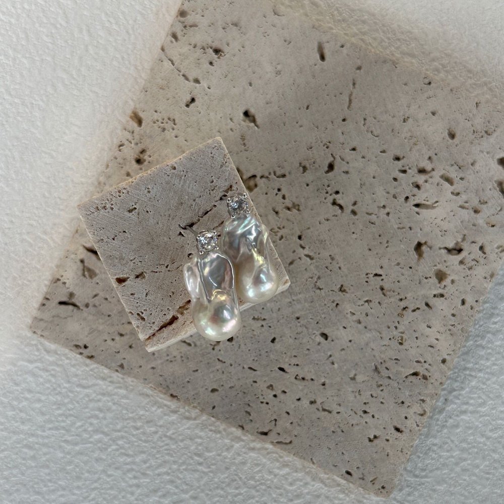 Size:Baroque Pearl is 16.6mm,Bright stone is 2.5-3mm,S925 Sterling Silver