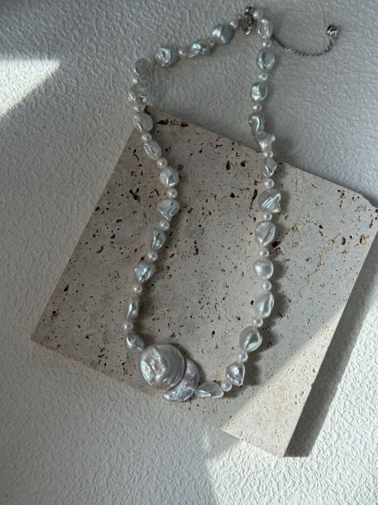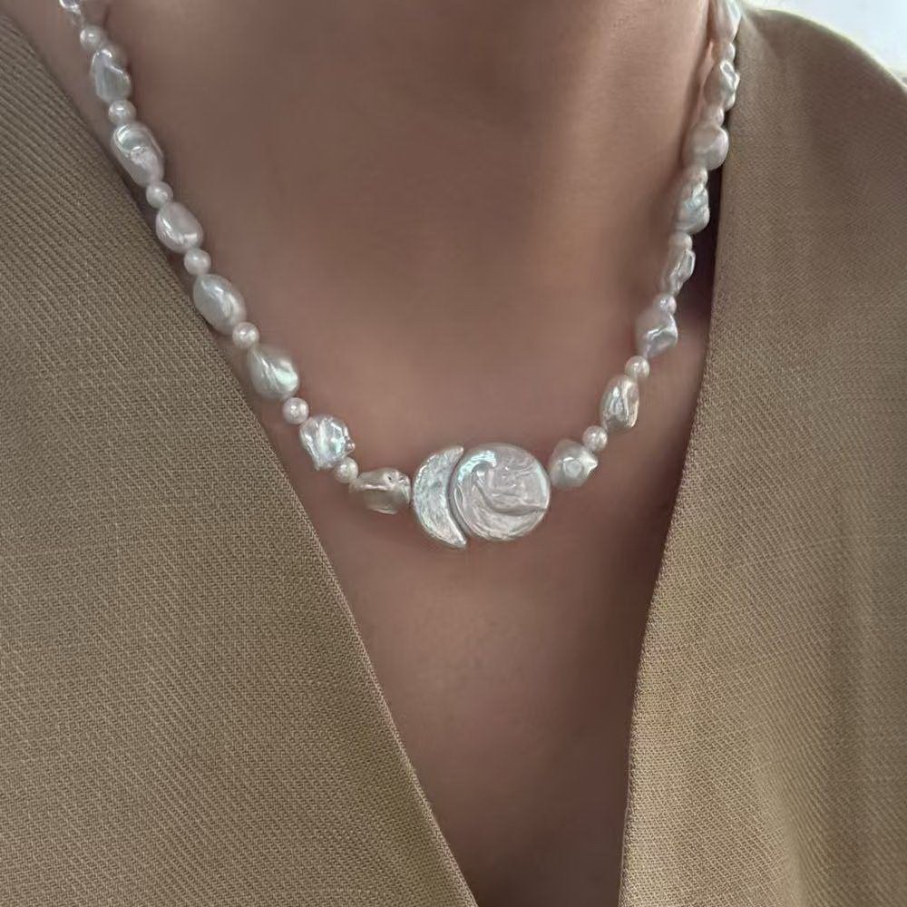 - Size: Sun Baroque Pearl is 16.6mm, Moon Baroque Pearl is 17.3mm, 6-9mm Pearl Choker is 14.9”, S925 Sterling Silver Clasp length is 1.9” extender.